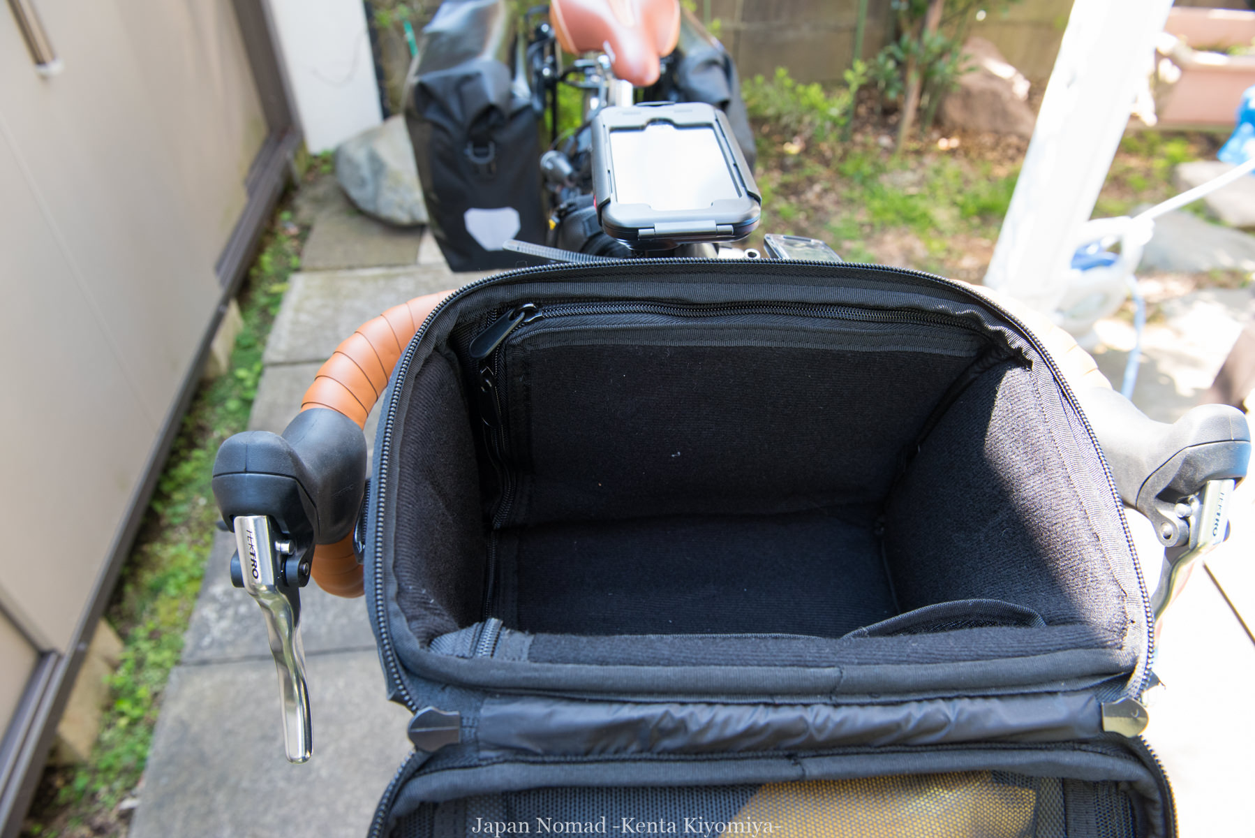 カメラじゃなくてもたくさん収納できるので、フロントサイドバッグを使わない場合には、これくらいのハンドルバーバッグがあると便利かなと思います。
